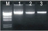 動物組織經(jīng)Tissue DNAKit純化后,其DNA于0.8%瓊脂糖凝膠電泳分析結(jié)果。