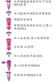 | 從聚丙烯酰胺凝膠中回收DNA片段 ·15-30分鐘內即可完成凝膠中DNA的回收。 ·回收效率高達85%。 ·核酸純化柱無須平衡液處理,柱子吸附力高達 μg DNA。 ·溶液中所含的pH指示劑可直觀地判斷溶液中DNA與硅膠膜的適宜結合條件。 ·可用50μl微量洗脫體積洗脫DNA。 產(chǎn)品原理 聚丙烯酰胺DNA回收試劑盒(PolyGel DNA Extraction Kit)采用硅膠柱純化方式,適合于從各種濃度各種類型的聚丙烯酰胺凝膠中回收單鏈或雙鏈DNA片段。純化過程無需用到有害的有機物萃取及乙醇沉淀,大大減少了操作時間,提高了DNA回收效率。回收產(chǎn)物可用于連接反應、PCR、Southern雜交等實驗。 實驗結果 ![]() DNA 凝膠回收試劑盒對PCR產(chǎn)物回收分析 1為純化前的PCR產(chǎn)物 3-4為經(jīng)PolyGel Extraction Kit 可適用的分子生物學實驗 DNA測序 基因芯片分析 DNA連接與轉化 限制性酶切 標記 PCR 體外轉錄 |