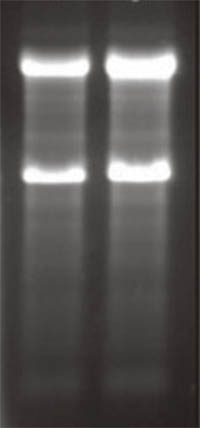 水稻葉片用Total RNA Kit II所提取RNA電泳圖.